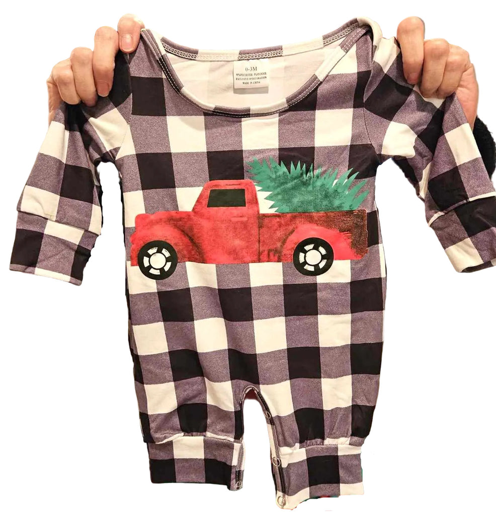 B/W Plaid Truck Romper *Clearance