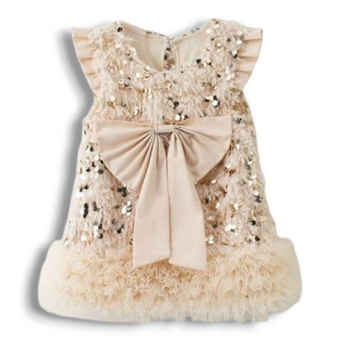 - Button closure at top, back of dress.