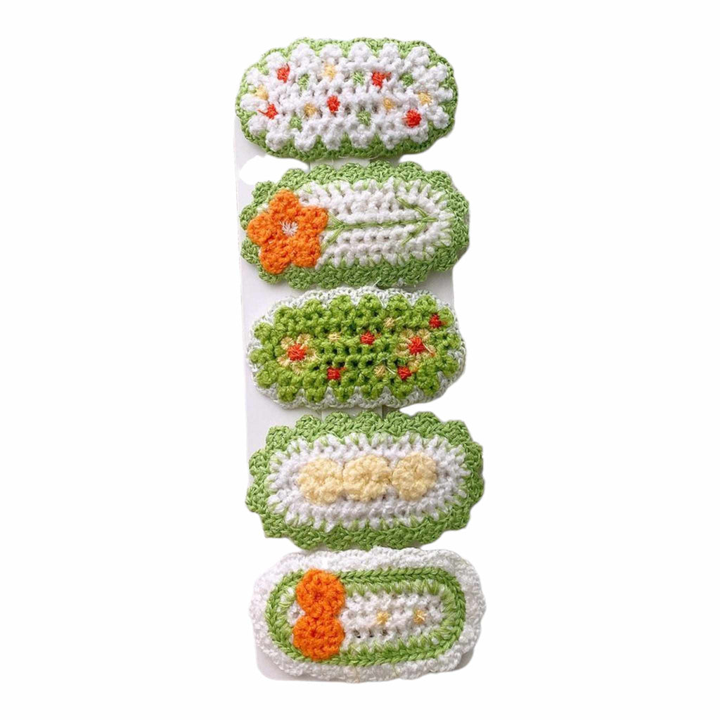 - Each flower clip is knitted and has a bend/lip barrette attached.