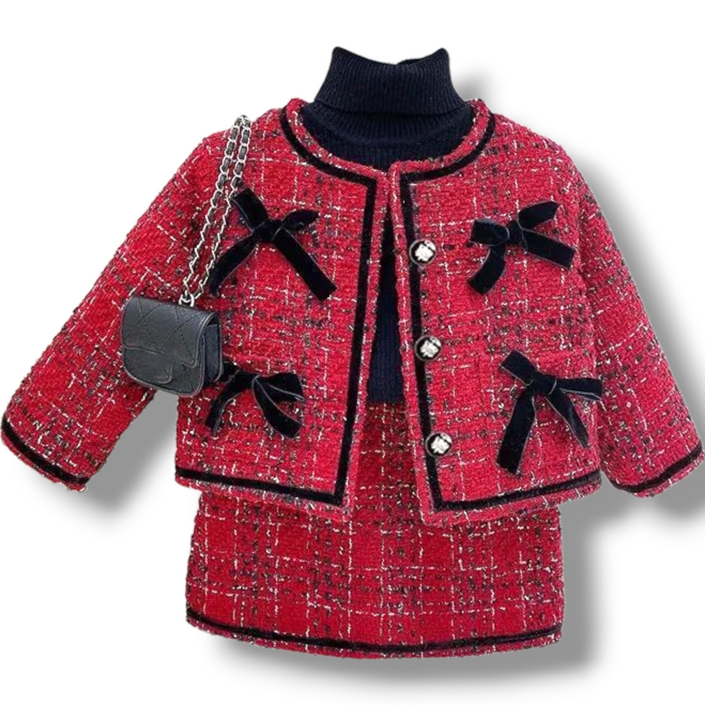 Wine Coco Tweed Skirt Set